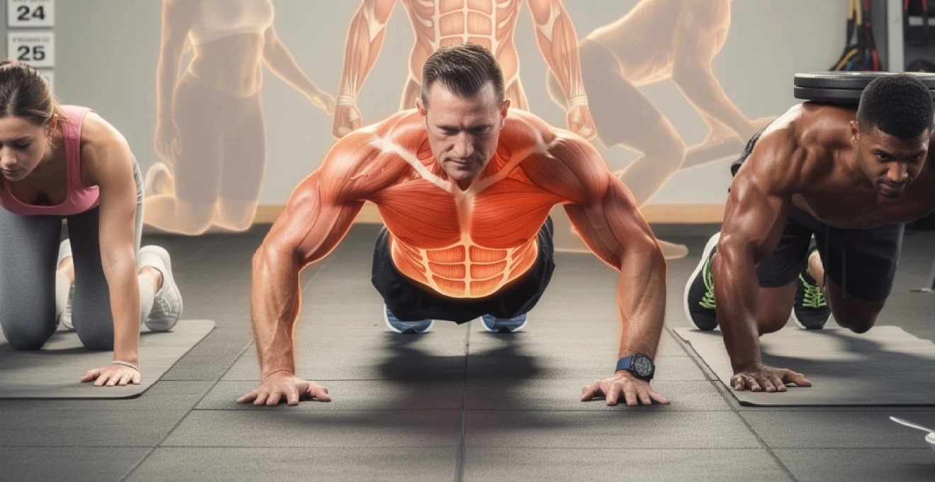 Les études en électromyographie (EMG) montrent que les pompes activent fortement les pectoraux, le triceps brachial et les deltoïdes antérieurs, mais également les muscles du tronc (grand droit, obliques, érecteurs spinaux) en co-contraction. C’est cette activation neuromusculaire globale qui explique pourquoi un programme structuré de pompes améliore à la fois la force, la posture et la stabilité. On peut comparer cela à une équipe qui apprend à jouer ensemble : au début, chacun travaille un peu dans son coin ; avec l’entraînement, les rôles se synchronisent et l’efficacité globale augmente.