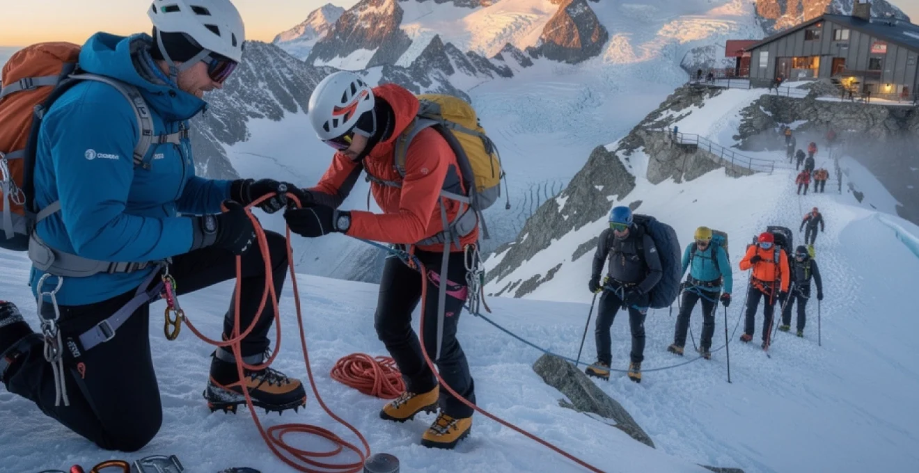 Une première expérience sur des arêtes rocheuses comme l’arête de l’Aiguille du Croche, la traversée des Aiguilles Crochues ou des courses d’initiation dans le massif des Aiguilles Rouges est vivement recommandée. Ces itinéraires vous apprennent à poser vos pieds, gérer le vide, évoluer encordé et manipuler la corde de manière fluide. Plus vous aurez accumulé de courses variées (neige, rocher, mixte), plus la difficulté de l’ascension du Mont Blanc vous paraîtra gérable techniquement.